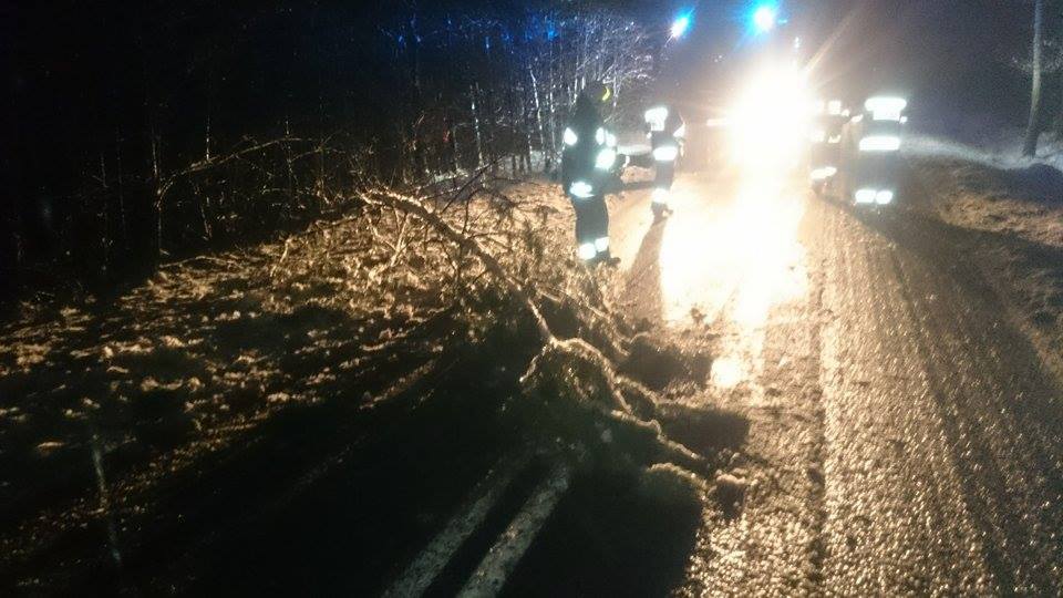 Przewrócone drzewo na ulicy Wiejskiej - 1 grudnia 2016