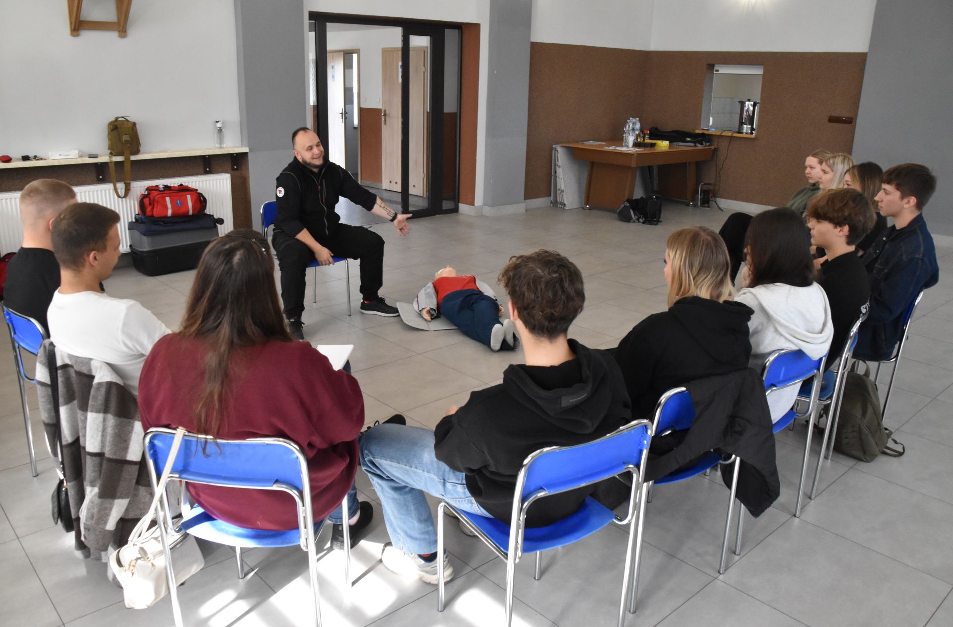 Na zajęciach została przekazana wiedza na temat pierwszej pomocy w przypadku zachłyśnięć, oparzeń, utraty przytomności, złamań, urazów kręgosłupa, krwotoku, zatrzymania akcji serca i wiele innych. Praktykę uczestnicy mogli poćwiczyć m.in. na: kamizelkach do chwytu heimlicha, pasach do stabilizacji miednicy, kołnierzach usztywniających, zestawu do pozoracji ran i wiele innych.